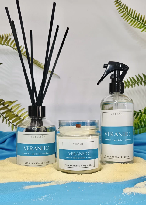 Criada para ser um convite à tranquilidade, a linha Veraneio traz à tona a leveza, a suavidade e o frescor da brisa marinha. Imagine-se em um dia ensolarado, sob a sombra fresca, sentindo a plenitude de estar à beira-mar. É a fragrância que evoca a perfeita sintonia entre o calor do verão e a imensidão do oceano.